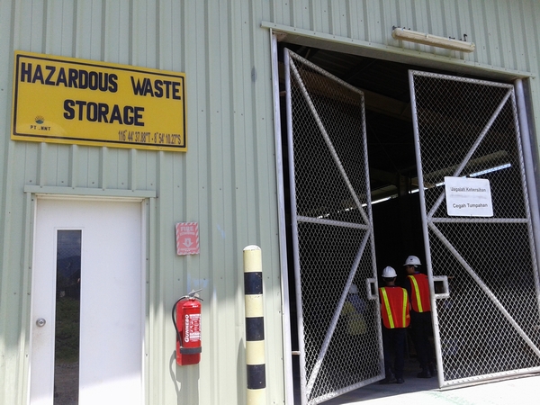 Penempatan bahan B3 ini pada ruang khusus semacam gudang di lokasi Benete. Pada saat kami masuk, bahan ini tidak banyak, karena baru saja di ambil oleh pihak ketiga. Untuk dimusnahkan maupun dipergunakan oleh pihak ketiga. Pihak NNT dalam hal ini mersa kompetensi pemusnahan, pemanfaatan kembali dan seterusnya tidak pada mereka.