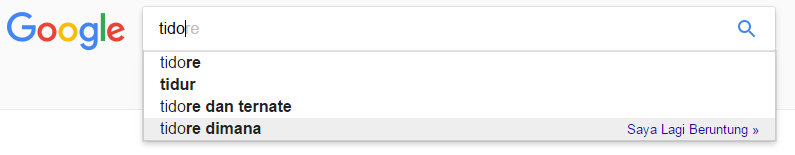 Asli ketawa sendiri baca Google suggest ttg menyarankan pencarian kata “tidur” saat mencari kata “Tidore” ….. Mbah Google gak belajar geografi sih he he ..