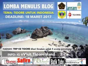 Juga kesempatan yang sangat langka, berhadiah gratis hampir sepekan “visit tidore island” beneran! Mengutip salah satu ungkapan dari publikasi gathering dan lomba yang saya baca, kesempatan ini seperti “jarum dalam tumpukan jerami”. So, tak boleh dilewatkan!