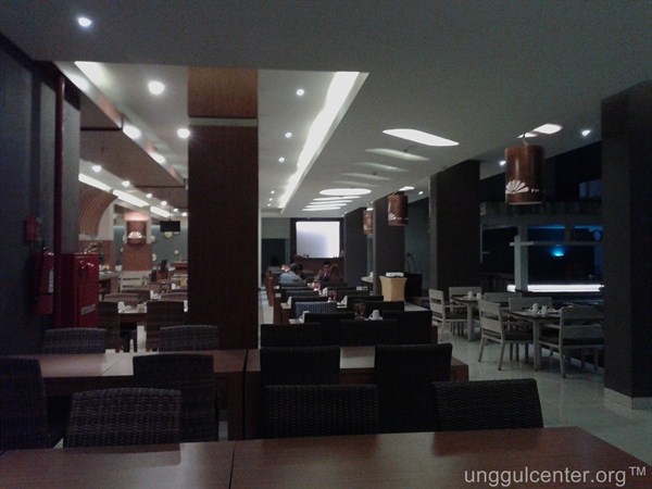 Untuk ruang makan, cukup bersih dan luas. Dengan menu yang lumayan enak, terutama yang khas Jogja seperti gudeg dan aneka menu manis lainnya. Hanya saja, jarak ruang makan dengan kolam renang terlalu dekat, sehingga tidak nyaman untuk berenang di Hotel ini. Terkecuali pada saat sepi.