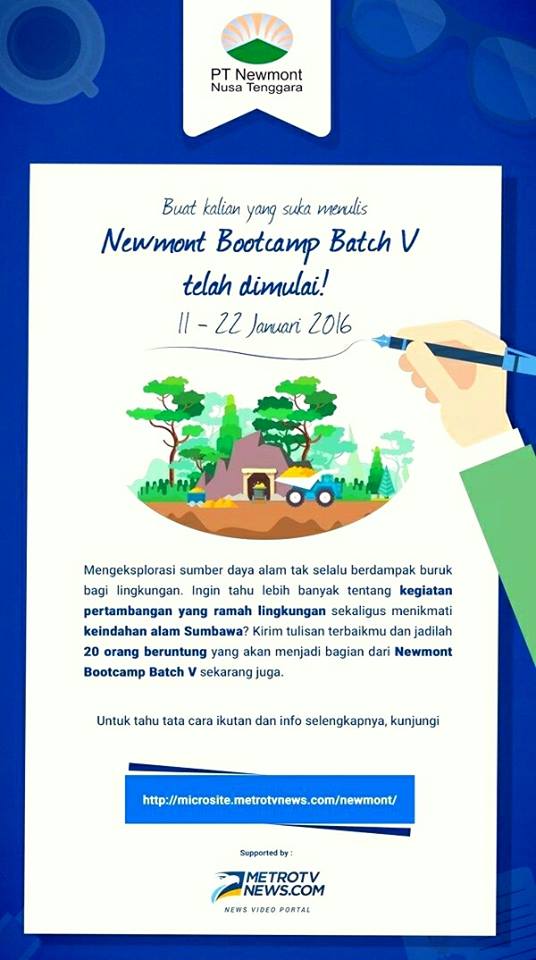 Prolog Ketika terpilih mengikuti Newmont Bootcamp, banyak hal yang terpikirkan, mulai dari catatan perjalanan hingga makna di balik peristiwa yang akan saya hadapi. Juga...