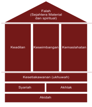 Lalu ada fondasi akhlak yang membimbing aktivitas ekonomi senantiasa mengedepankan kebaikan sebagai cara mencapai tujuan. Jadi prosesnya pun berakhlak dan beretika.
